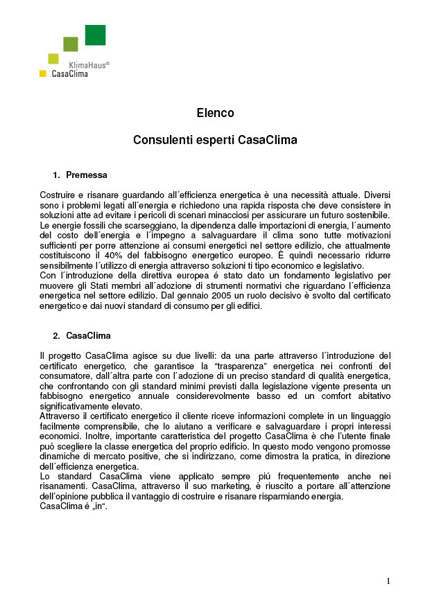 ELENCO CONSULENTI ENERGETICI Esperti CasaClima